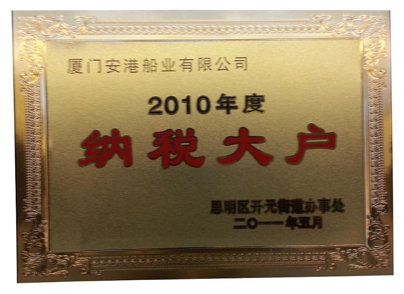 2010年度安港船业纳税大户 2009年度500万元以上纳税大户