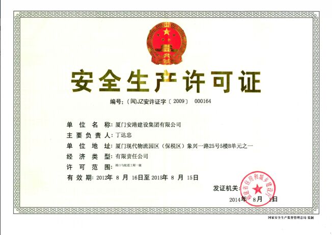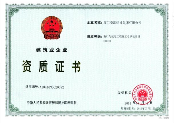 港口与航道工程总承包壹级资质 安全生产许可证