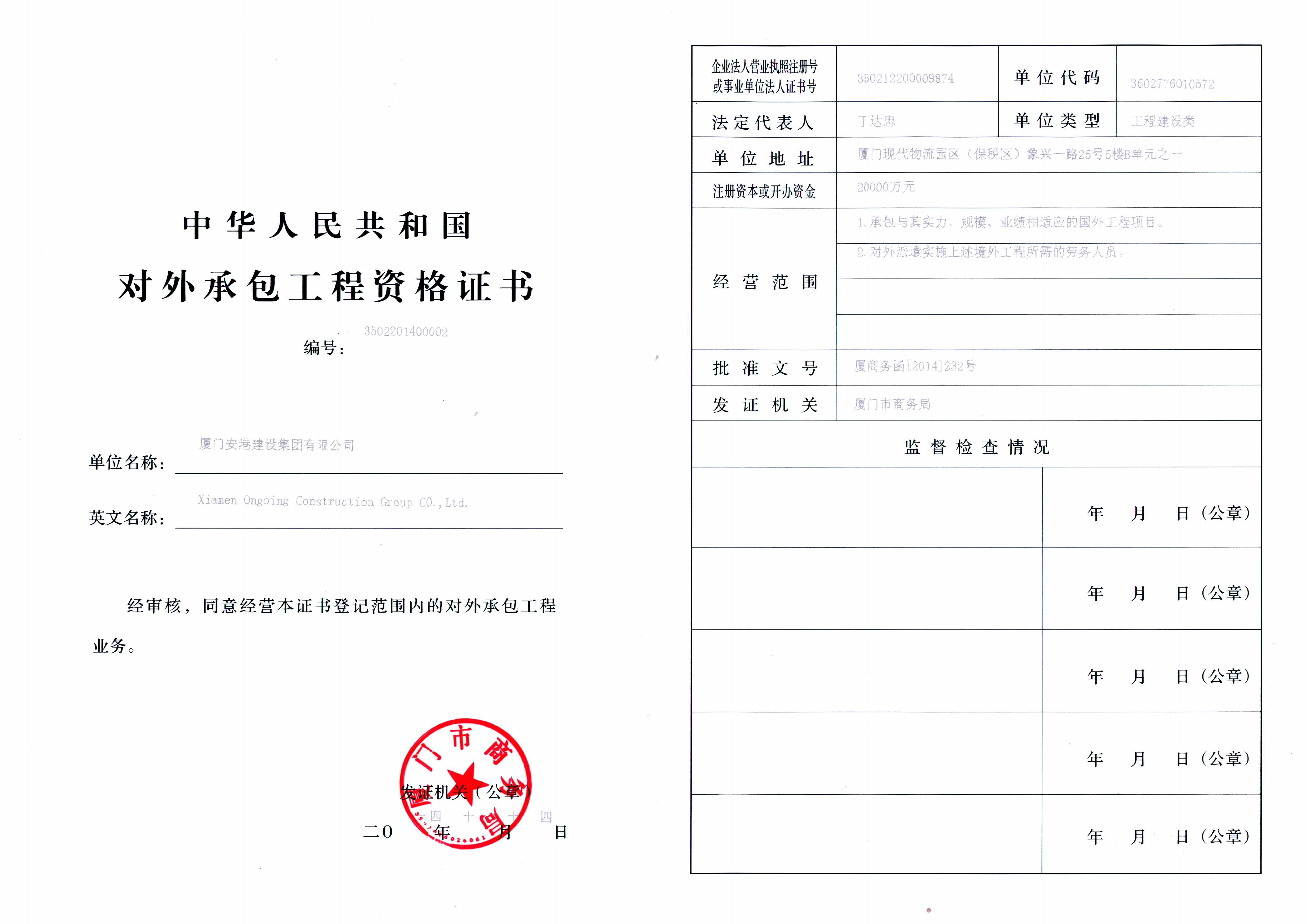 厦门市建筑行业协会会员 厦门市平潭商会副会长企业